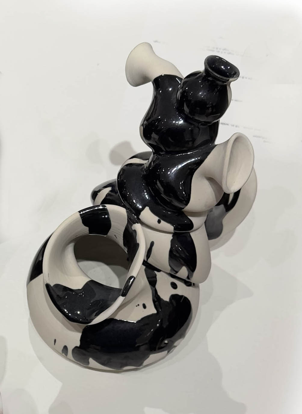 Other pieces of note are several ceramic sculptured pieces by Crystal Reynolds, using shaped vessels. They form into mounds in various sizes. The use of the glaze extends the design.