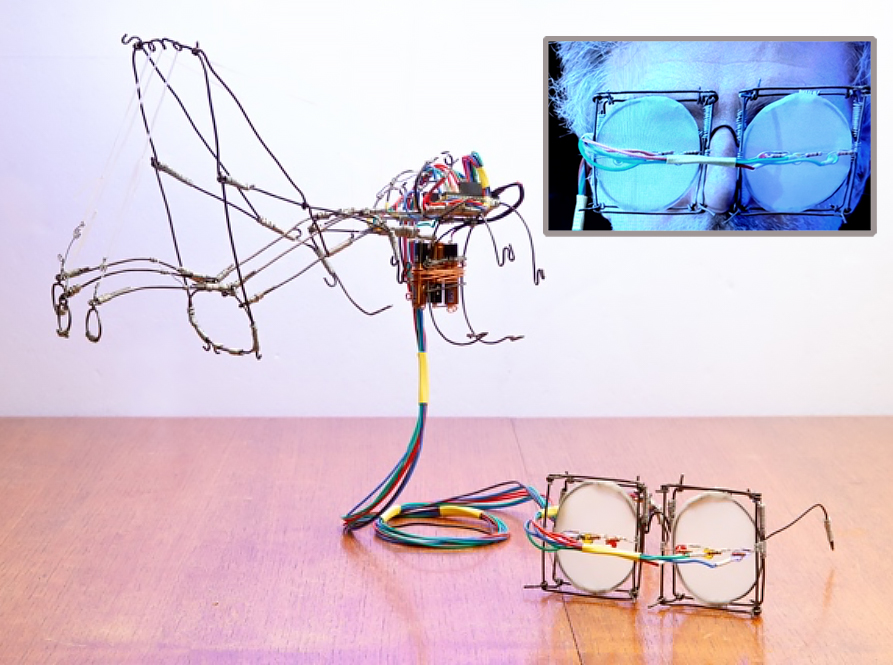 One piece of construction that is truly unique and inventive is a wire sculpture, “The Photonic Healing Machine,” by David G. Stevens. It is designed to be worn on the hand and head. Added to the originality of this piece is an accompanying, descriptive video (complete with its own commercial). This and all the pieces presented are well worth viewing.