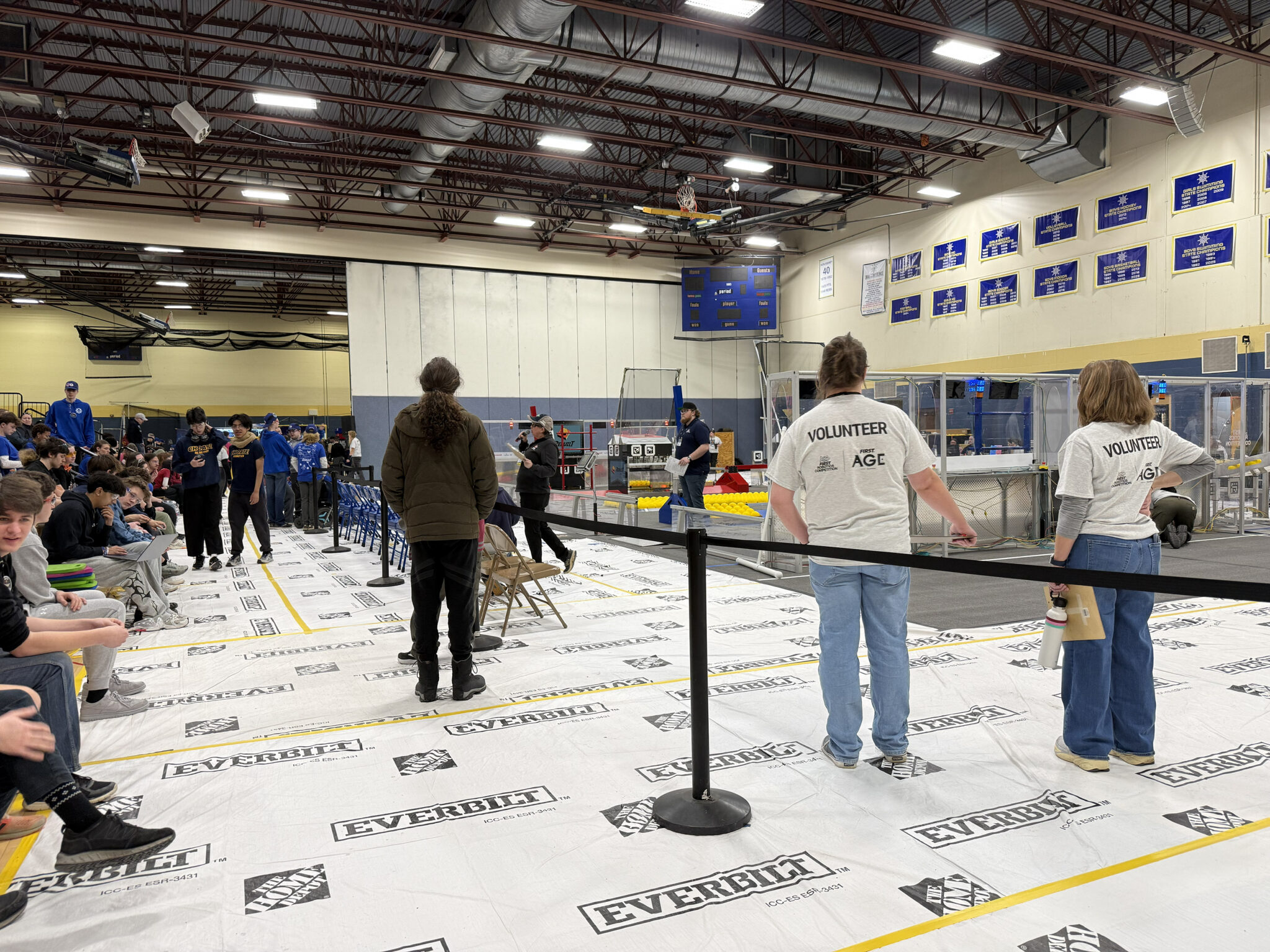FIRST (For Inspiration and Recognition of Science and Technology) Competitions are like a sporting event, and depend on volunteers and gracious professionals to mentor the students, run the competitions, and much more. (Photo Credit: Lori Arsenault)