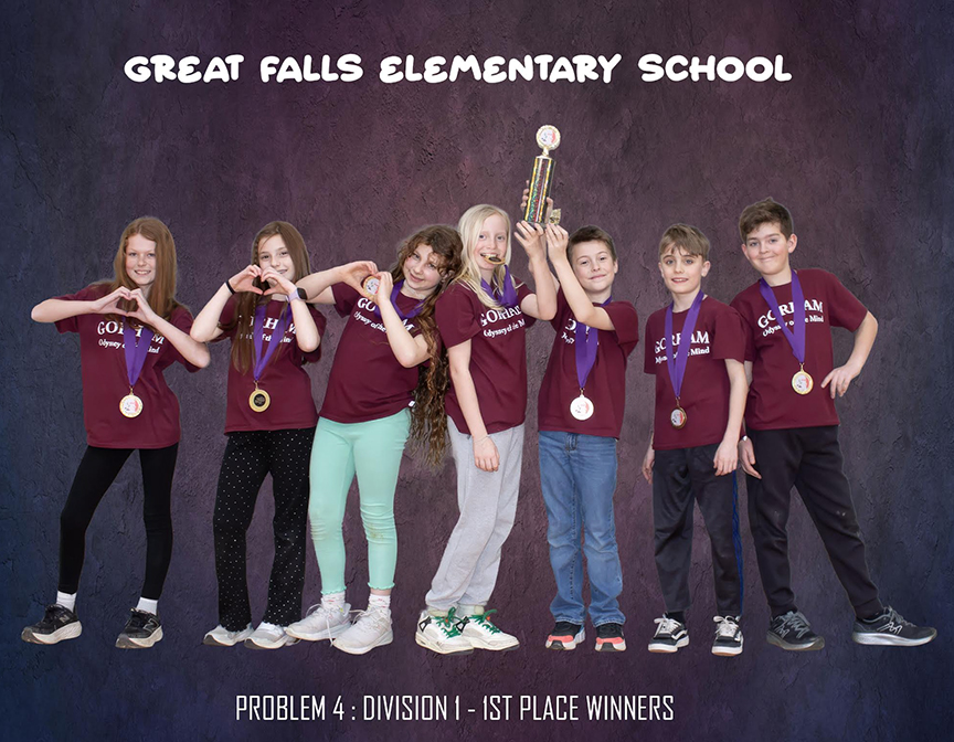 On Saturday, April 4, Gorham had eight teams compete at the Odyssey of the Mind Tournament. All of Gorham’s teams performed exceptionally well, with three teams placing first and two teams placing third. Teams that place first or second are invited to attend World Finals. The Great Falls fourth grade Structures team, one of the first place finishers, is the only team to decide to compete at the tournament’s World Finals at Iowa State University in May.